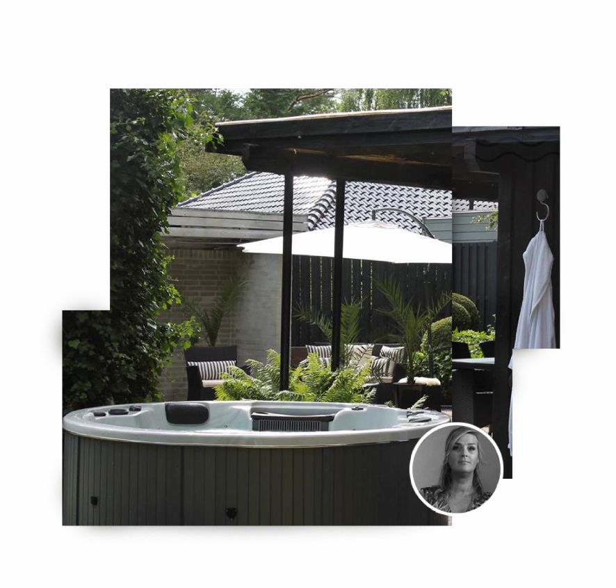 Annie bor ved flotte Silkeborg i Danmark. Hun er hageentusiast og har innrettet hagen sin med kroker, utekjøkken, spiseplass og utepeis. Annie tenkte at det hyggelige gårdsmiljøet kunne suppleres med vann og wellness, og tenkte derfor at et boblebad ville passe godt inn i hagemiljøet.