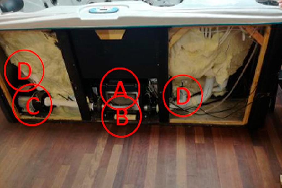 Normalt pleier pumpen å være plassert bak panelet, under displayet på boblebadet.
