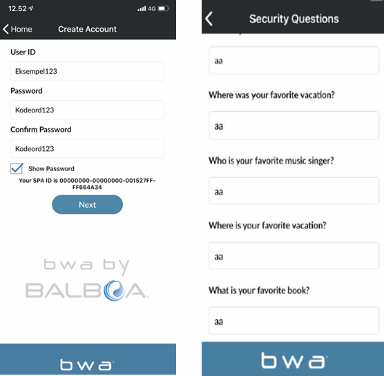 Når du har utfylt spørsmålene skal du bare trykke på «Create account» nede i bunnen og så er du koblet til ditt boblebad via Balboa-appen. Du kan nå stenge appen helt, gå på 3G eller 4G og åpne appen. Når du åpner appen skal du trykke på «Cloud connect», så ber den deg om å logge inn, og når du dette er gjort så vil du være forbundet til ditt boblebad, selv om du er på 3G/4G.