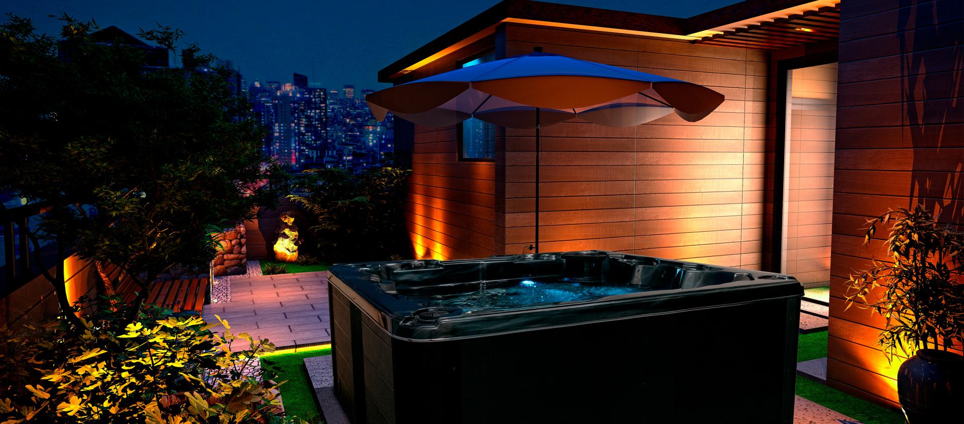 Selv om et utendørs boblebad i seg selv er utrolig deilig, kan omgivelsene faktisk gjøre helhetsopplevelsen enda bedre. Skap en hyggelig atmosfære med grønne planter, lys og musikk. Plant f.eks. noen vindmøllepalmer i store krukker – de minimerer innsyn og skaper syden-stemning. For en mere intim og romantisk stemning kan du med fordel henge opp noen lyslenker, eller plassere lykter med levende lys rundt om boblebadet. Ikke glem musikken – de fleste av våre boblebad har innebyggede høyttalere - det setter prikken over i’en på spa-opplevelsen.