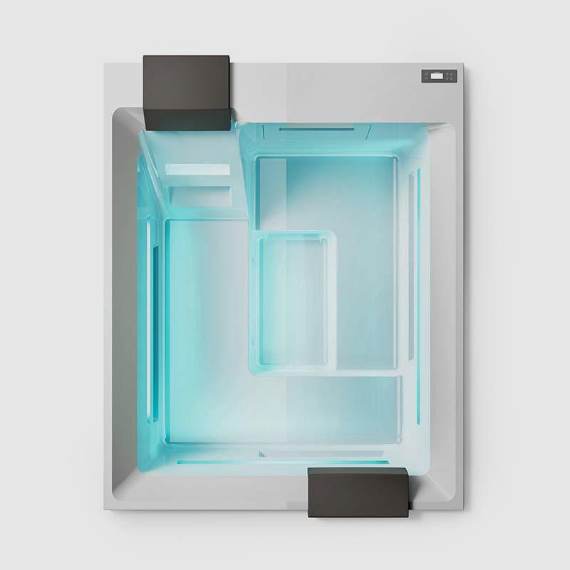 Lysterapien er på samme måte som dysene gjemt vekk på innersiden av den tynne kanten i karret. Dermed skapes en rolig og behagelig opplevelse i boblebadet, og samtidig er fargespillet designet til å skape en atmosfære som legger opp til avslapning av kropp og sinn.