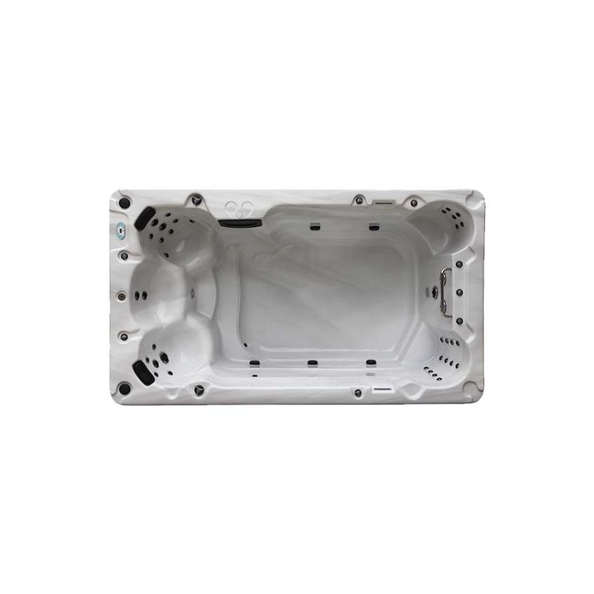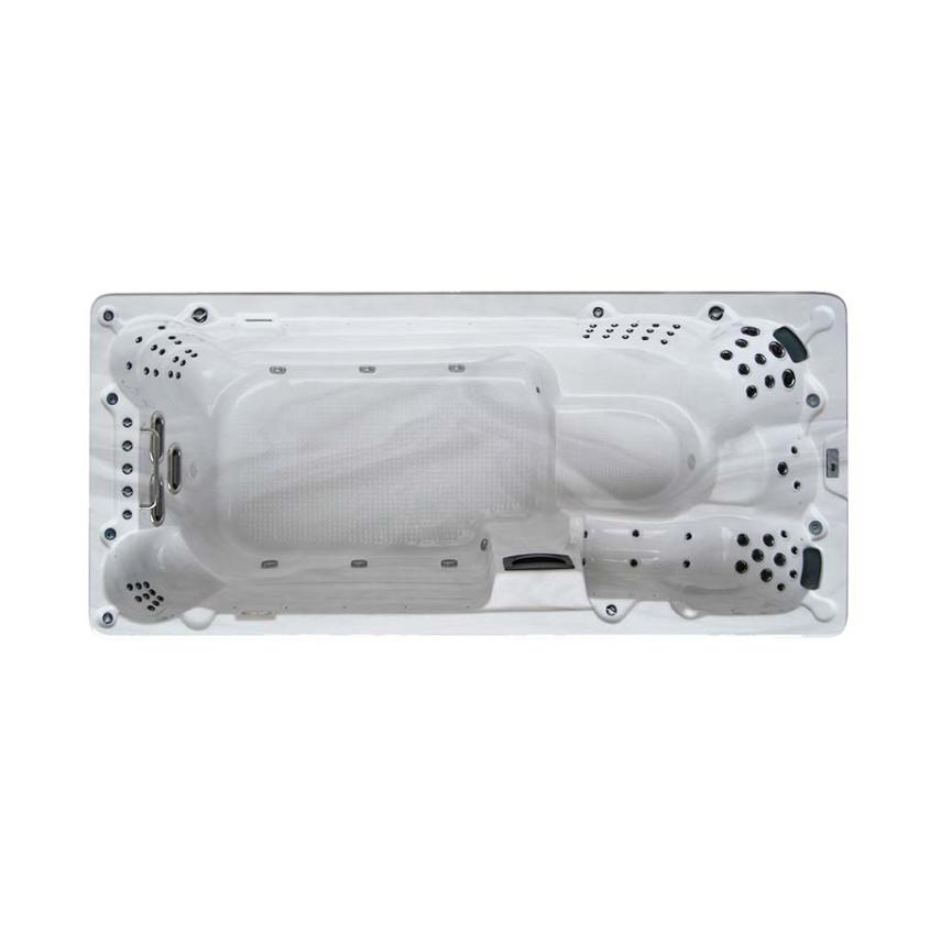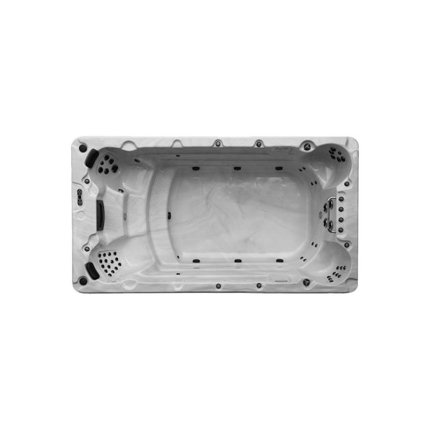 Et 6 m motstrømsbasseng er todelt med en separat boblebad-del med egen kontroll, temperaturinnstilling og filtersystem.